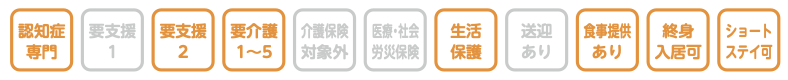 | 施設概要 | 豊かな自然の中で、他のご利用者様、介護スタッフと共に家事などを役割分担しながら共同生活を行う入居型の施設です。ご利用者様が可能な限り自立した日常生活を送ることができるよう、家庭的な環境と地域住民との交流のもとで、食事や入浴、排泄などの日常生活上の支援や機能訓練などのサービスを受けることができます。 |