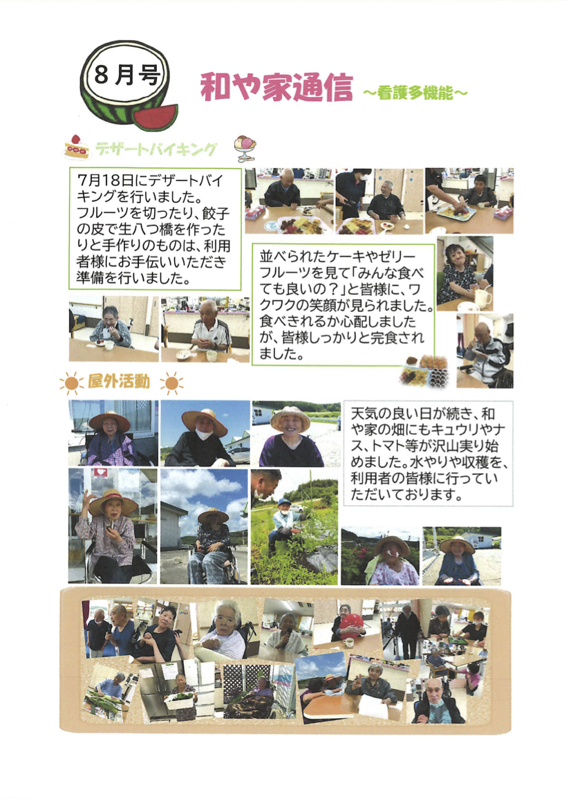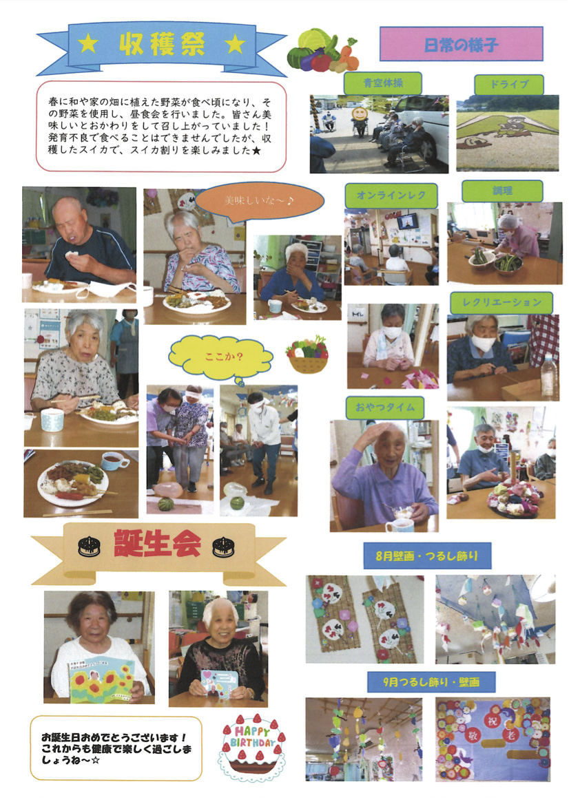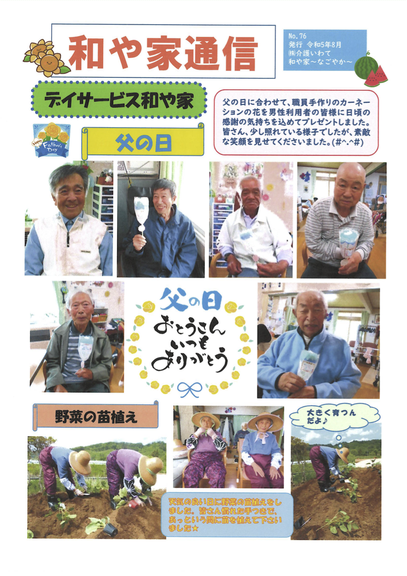 スタッフが向上心を持って働ける環境を作り、ご利用者様に質の高い介護として貢献していきます。